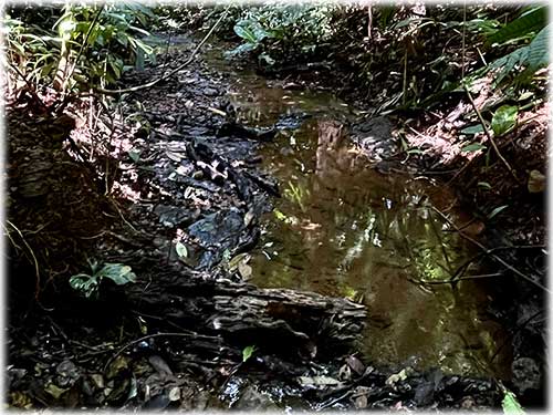 The finca borders a beautiful "naciente" creek, providing a natural water source and a serene atmosphere. It is strategically located within the "Zona Pasa Lapas" biological corridor, which connects the Carara and La Cangreja National Parks, making it a haven for local wildlife and exotic birds.