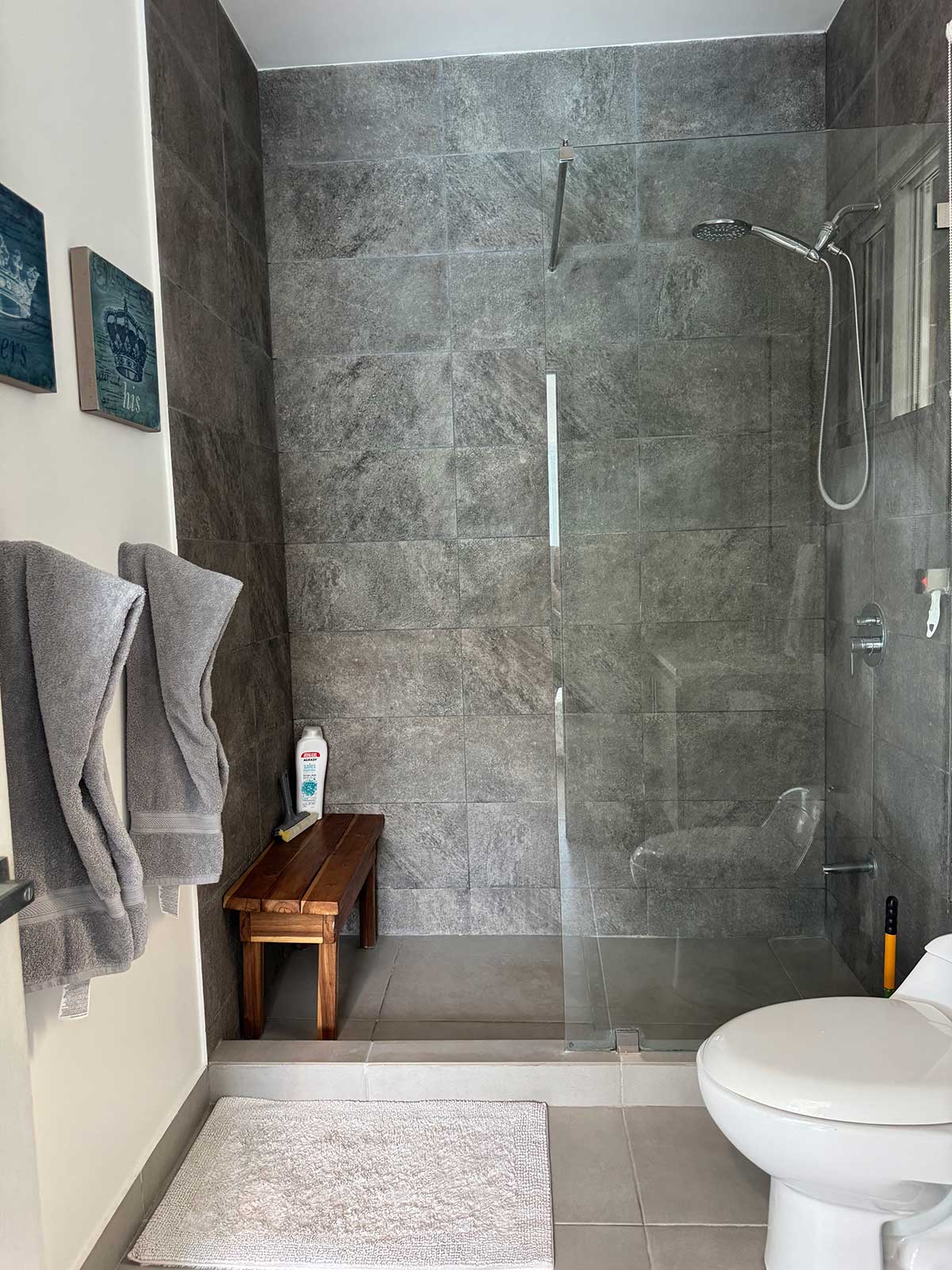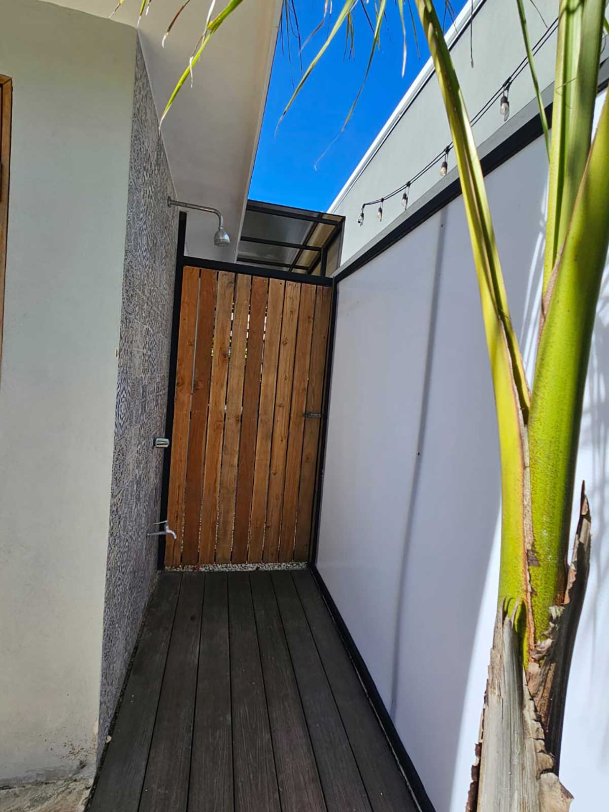 Outdoor shower finished with modern tile
