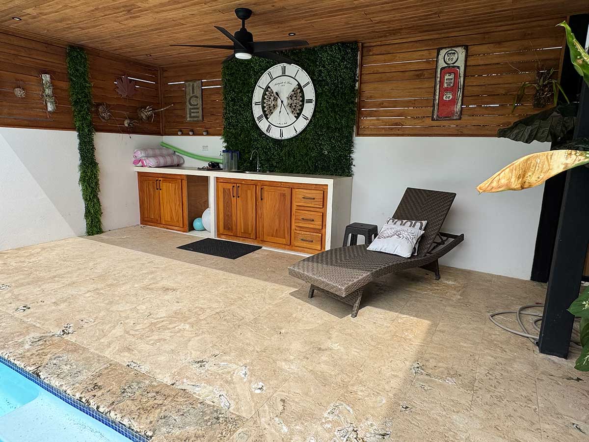Corolina non-slip flooring to keep feet cool and safe around the pool
